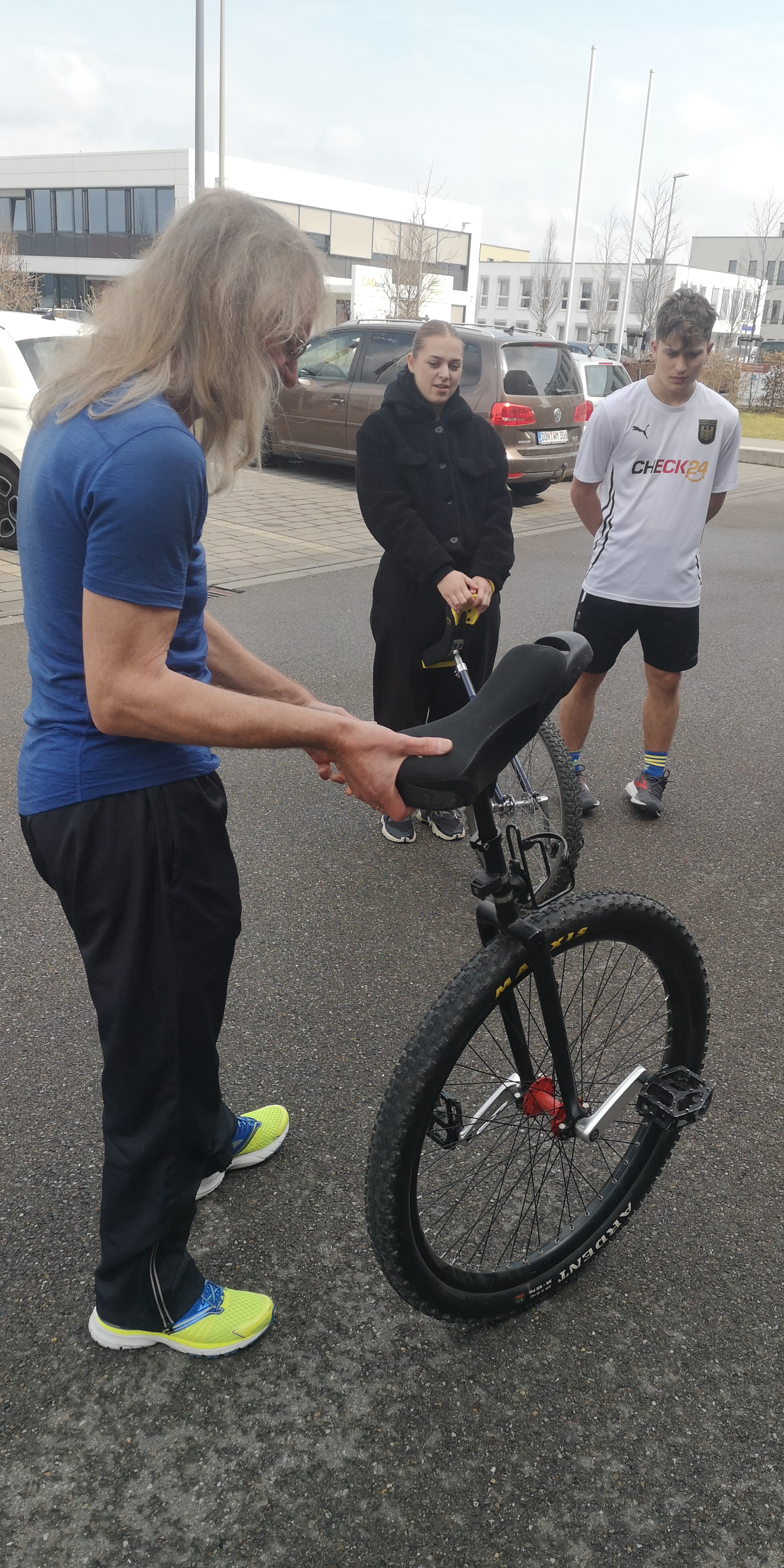 Auch technisch ist das Einrad hochinteressant. Herr Pfeil ist am Institut bekannt als Tüftler und Denker, der so manches Vehikel selbst konstruiert und weiterentwickelt hat. Dieses technische Wissen, sowie seine Erfahrungen, die er bei einem Alpencross auf dem Einrad gesammelt hatte, ergänzten den Tag in perfekter Weise. Ein herzliches Dankeschön dafür an dieser Stelle an Herrn Pfeil.