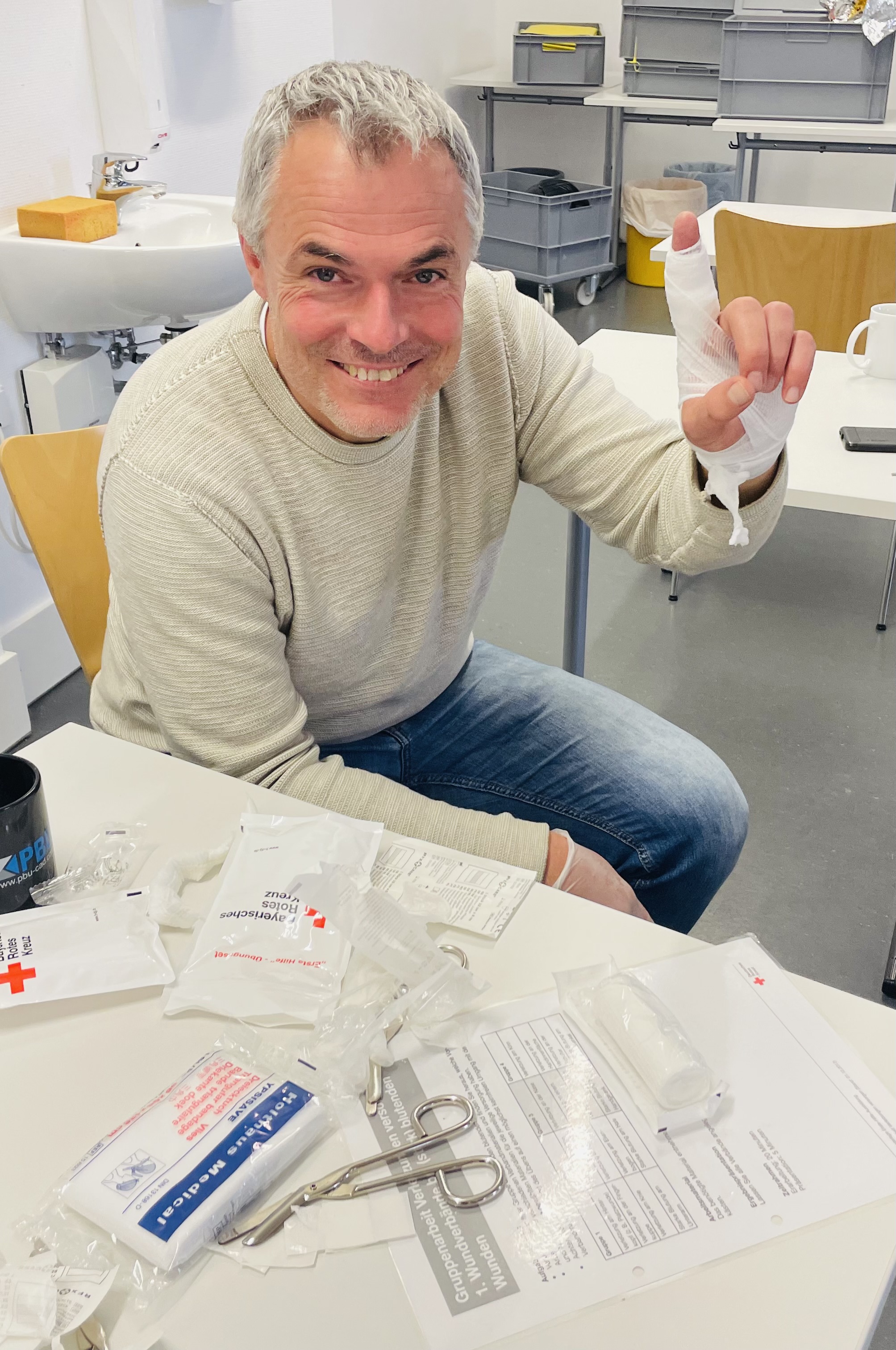 Ein ganzer Tag voller Pflaster, Verbände und sehr engagierter Wiederbelebungsversuche hinterlässt seine Spuren – auch bei unseren Dozentinnen und Dozenten. Zwischen stabilem Seitenlagerungs-Ballett und beherzten Druckmassagen auf die Übungspuppe zeigte sich eindrucksvoll: Pädagogik und Puls fühlen passen erstaunlich gut zusammen. Manche entdeckten ungeahnte Talente im schnellen Anlegen von Dreieckstüchern, andere stellten fest, dass ein bewusstloses Übungsphantom überraschend schwer sein kann, wenn man es zu zweit gleichzeitig retten will.